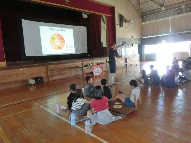 カルビーの方をお迎えして「カルビースナックスクール」を行いました。内容は、おやつを食べる量、時間、カロリーなどおやつについて学習しました。また、ポテトチップスができるまでやSDGsへの取り組みについても教えていただきました。