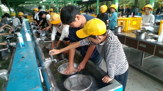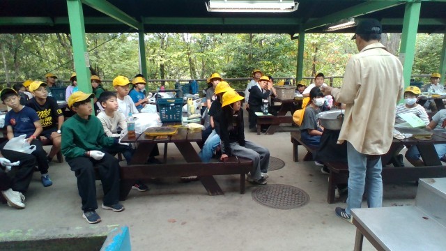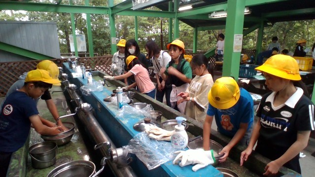 部屋の片付けをした後は、お昼ごはんのカレー作りです。しっかり説明を聞いて、みんなと協力してカレーを作りました。