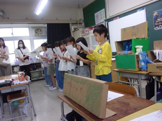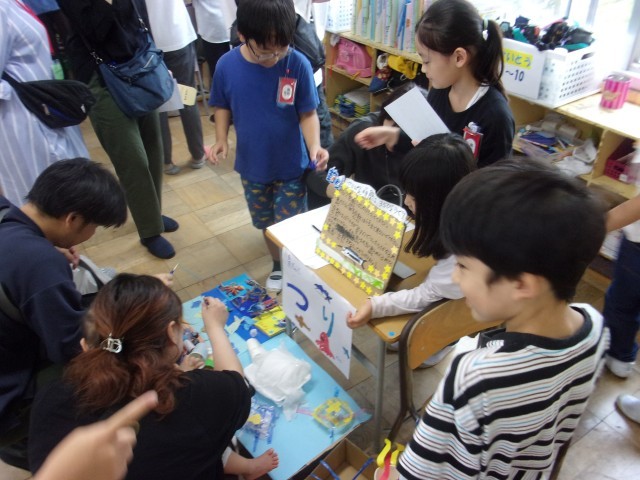 今回の授業参観はおもちゃフェスティバルでした。10月28日に1年生のために開くおもちゃフェスティバルより一足先にお家の方にお越しいただきました。2年生は、この日のためにお店つくりを頑張ってきました。よりよいお店にするために、話し合いを重ね、何度も改善してきました。今回も、お家の方に、たくさんのアドバイスと温かいお言葉をいただきました。ここからさらにパワーアップができるように子どもたちも意気込んでいます。ご協力ありがとうございました。10月28日本番のお話もご家庭でぜひ聞いてあげてください。本日は、お忙しい中、来てくださりありがとうござました。