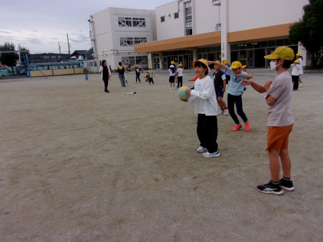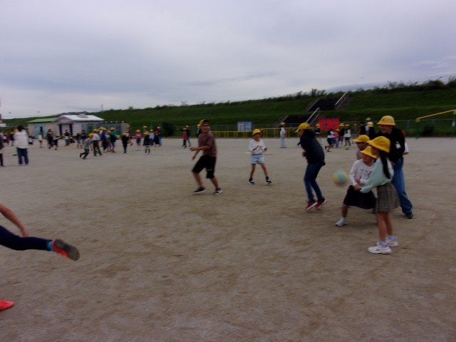 ちょうど良い気温の中、運動場でドッジボールや大縄を楽しんでいました。