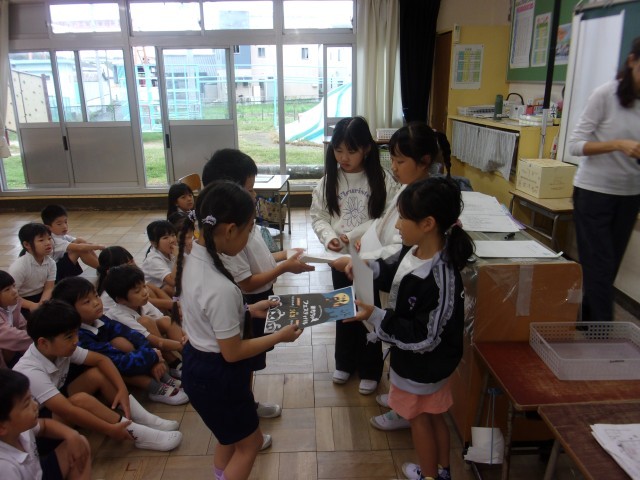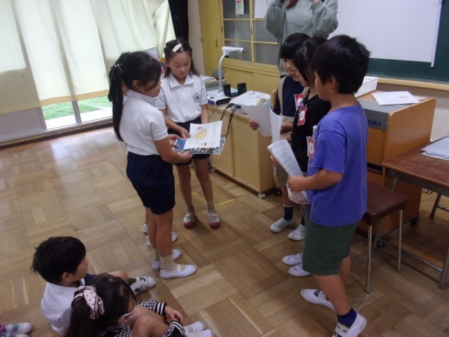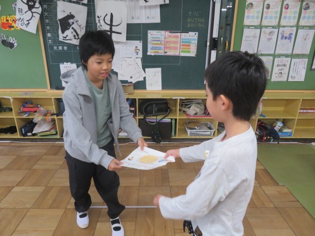来週はいよいよ1年生に向けたおもちゃフェスティバル本番です。そこで、2年生から1年生やあおぞらにおもちゃフェスティバルの招待状を渡しに行きました。実行委員の子が招待状を渡すと1年生やあおぞらの子たちは嬉しそうにお礼を言ってくれました。本番もたくさん楽しんでもらえるように頑張ります!