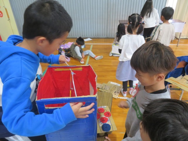 前半、後半に分かれて、2年生だけのおもちゃフェスティバルも行いました。各クラスそれぞれ工夫を凝らしたお店にお互いが驚きながら楽しんでいました。お店屋さんはもちろんのことお客さんとしてもルールやマナーもばっちりでした!