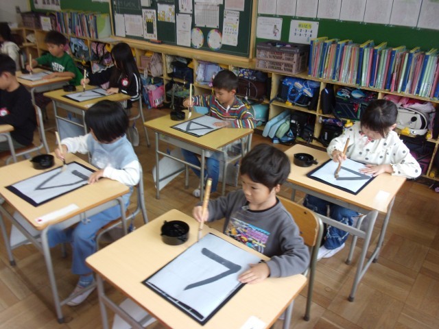 最後は、「うし」を大きく書きました。みんな集中して取り組んでいました。