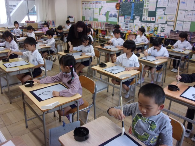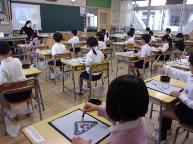 2回目の書道科の時間です。準備もずいぶん早くなってきました。