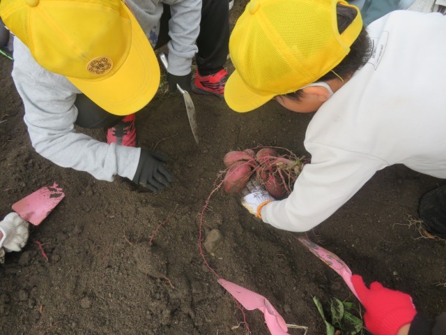 さつまいもほりがありました!今年は豊作でした。この日までに各学級で愛情たっぷりに水やりをしてくれたおかげです。さつまいもが見えるたびに感嘆の声を上げ、取れると歓声が上がりました。今回収穫したさつまいもは、学校で寝かせた後、後日お渡しします。おいしく調理してください。服や軍手のご準備ありがとうございました。