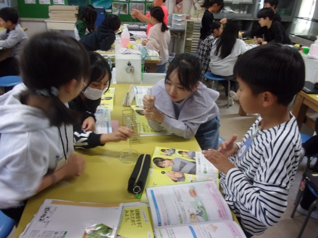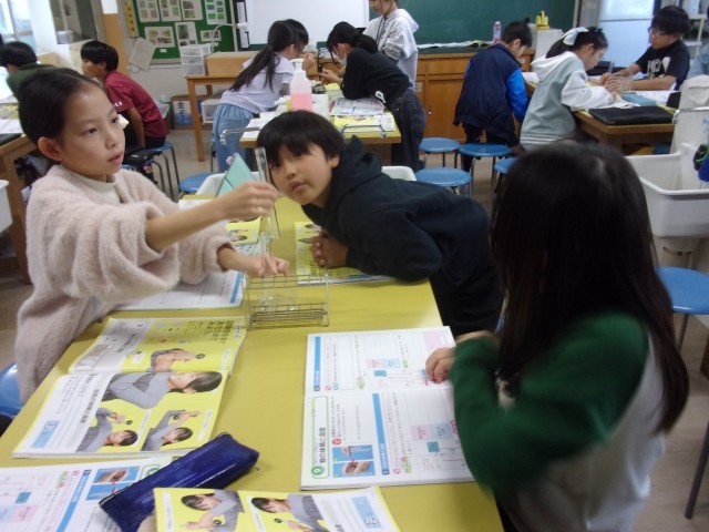 4年生 授業の様子 公開日 2025/11/04 更新日 2025/11/04 学校の様子 4年生では理科の物の体積と温度の学習で試験管を手であたためると先についたシャボン液がふくらむ実験をしました。それぞれの班がどうしてふくらむのか話し合いながら考えていました。 +4