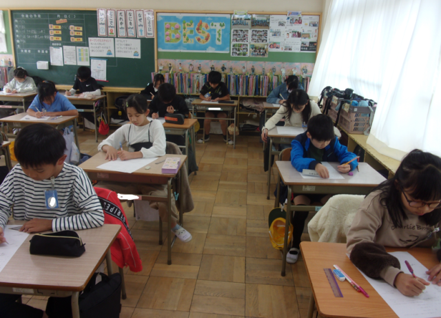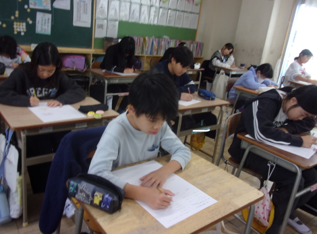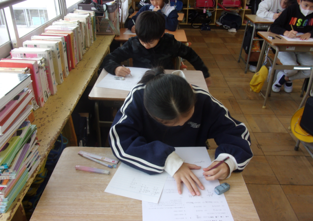 4年生は先週と今週で算数と国語の基礎学力テストを行いました。2学期に行った内容をよく復習し、どの子も一生懸命取り組みました。