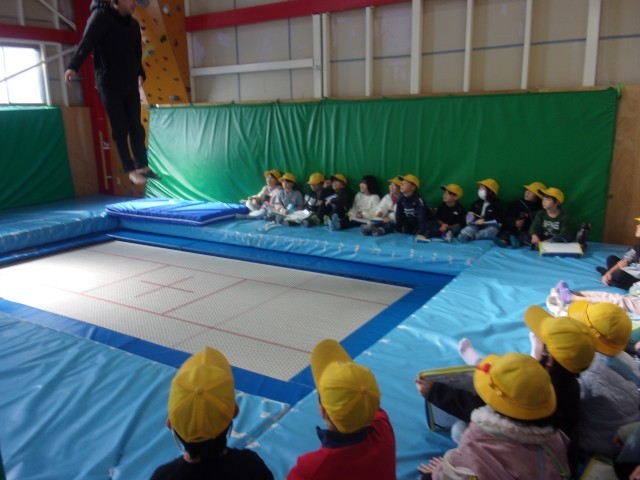 トランポリンハウス ヴィヴァーチェさんへ行ってきました。ヴィヴァーチェさんでは、トランポリンの大技を見せていただきました。その迫力に子どもたちもびっくり。トランポリンの魅力に取りつかれていました。今度は、トランポリンをやりたいという子がたくさんいました。ありがとうございました。