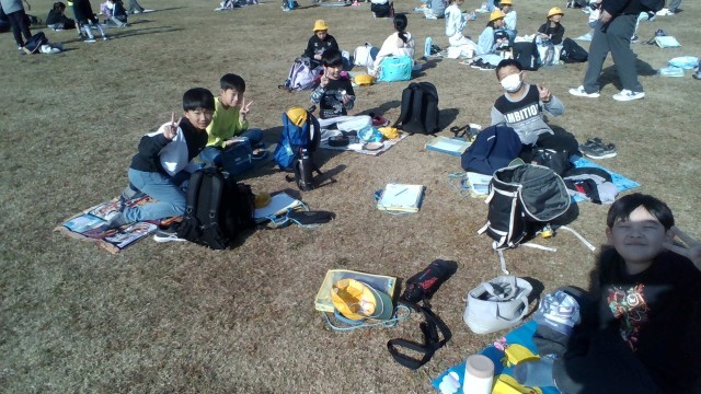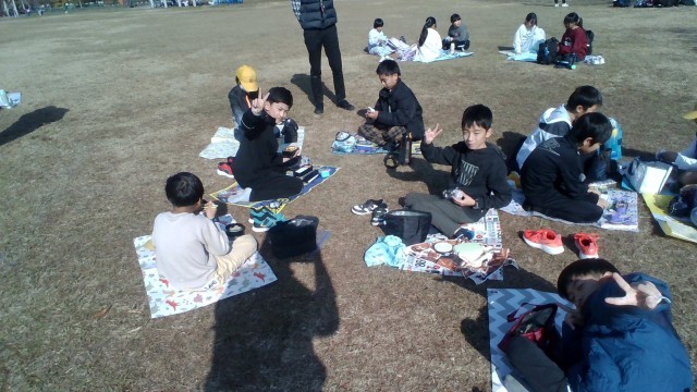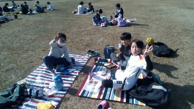 木曽三川公園でお昼ご飯です。天気が良く、暖かくて気持ちが良いです。