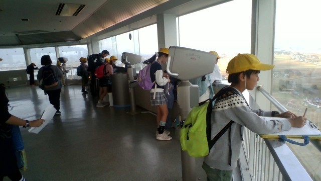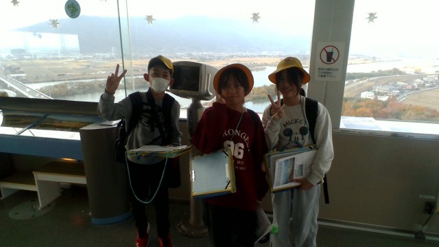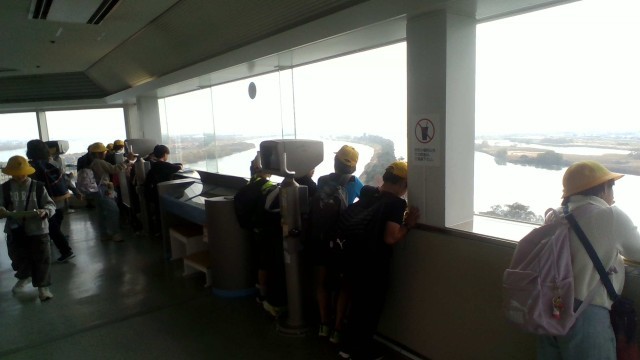 展望タワーにのぼり、雄大な木曽三川を見学しました。