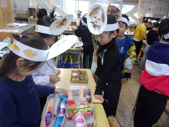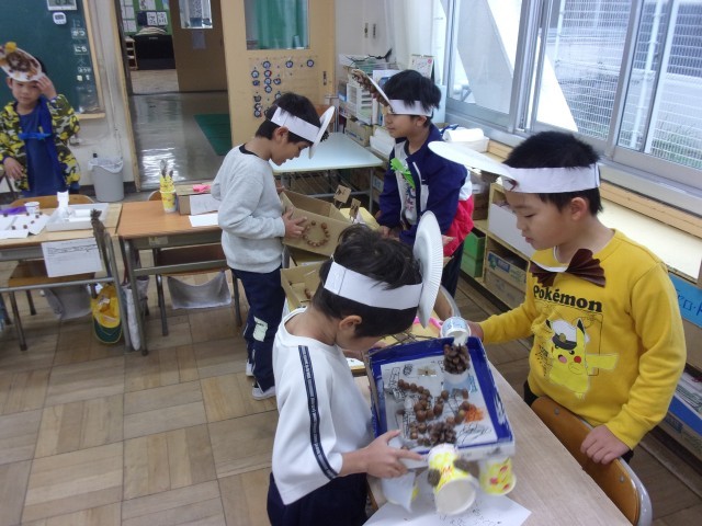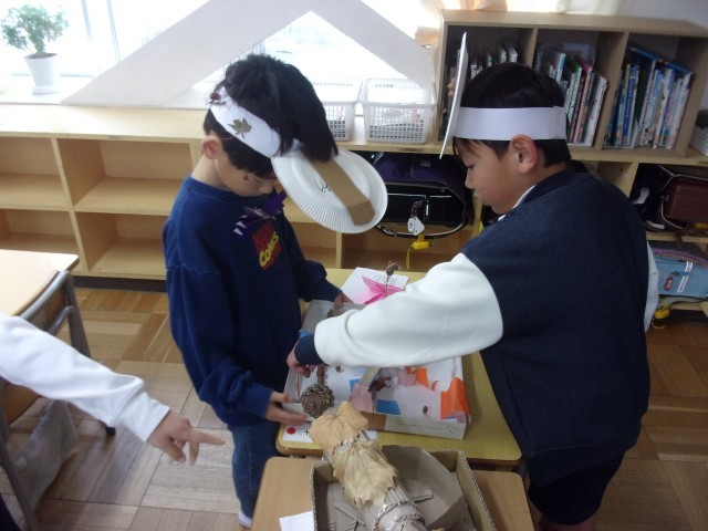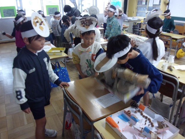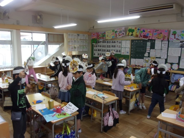 1年生3クラスの教室を使って、前半チーム&後半チームに分かれて見て回りました。