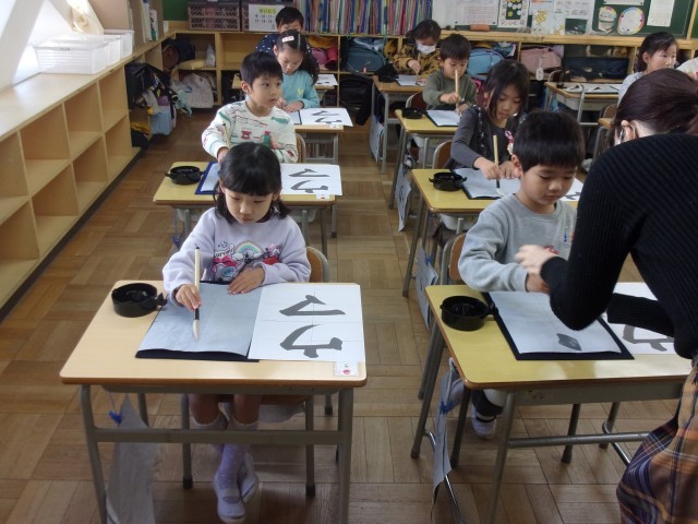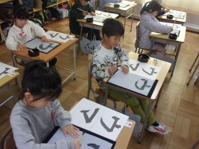 今週は、書の時間、命の学習、歯磨き指導などがありました。