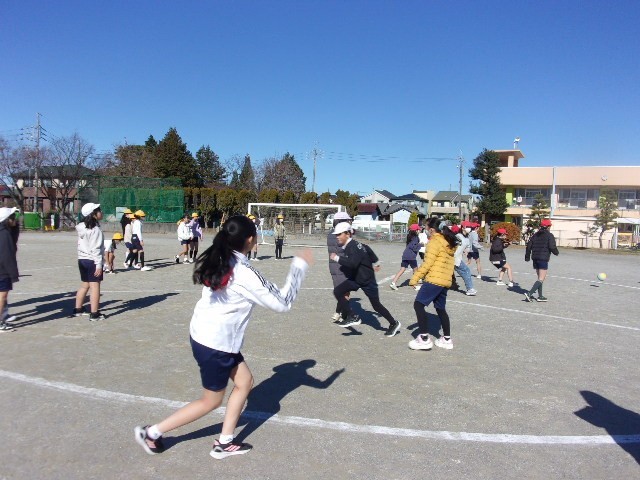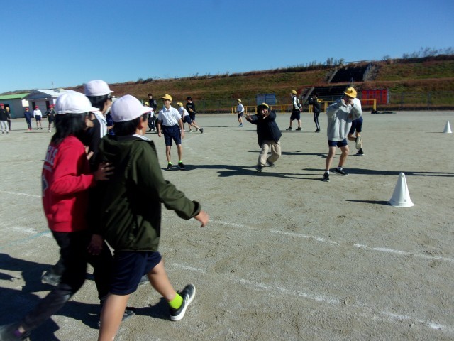 3、4時間目に学年レクを行いました。3クラス対抗で、障害物リレー・ピザドッジ・赤白黄おにごっこをしました。