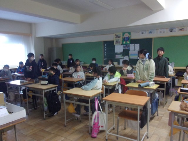 2学期の終業式がmeetで行われました。習字の尾書研コンクールで入選や優等、特選に選ばれた児童の名前が呼ばれ、担任から賞状を受け取りました。校長先生の話や冬休みの生活の話を真剣な表情で聞いていました。楽しい冬休みになるように、健康や安全に気をつけて過ごしてほしいです。2学期もご協力ありがとうございました。