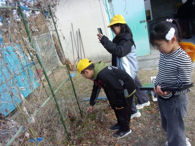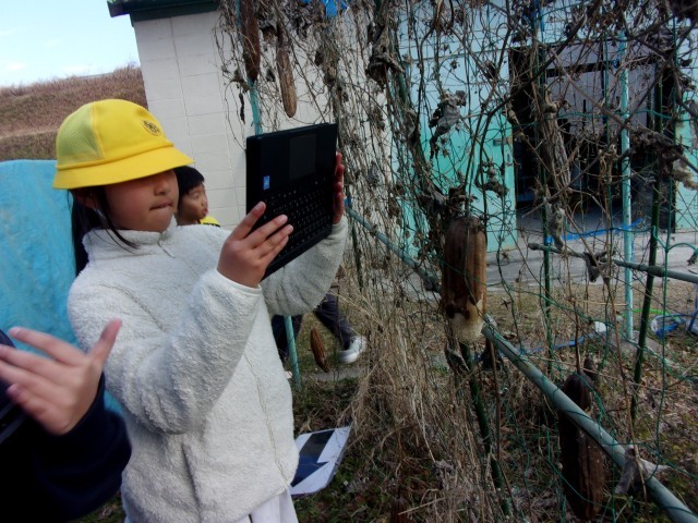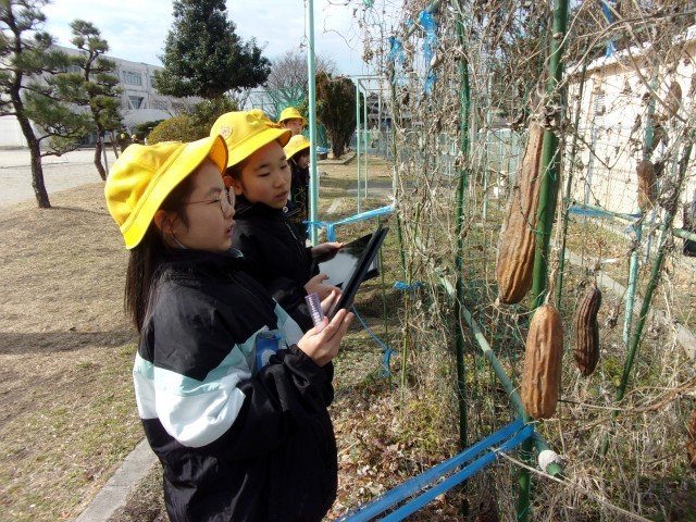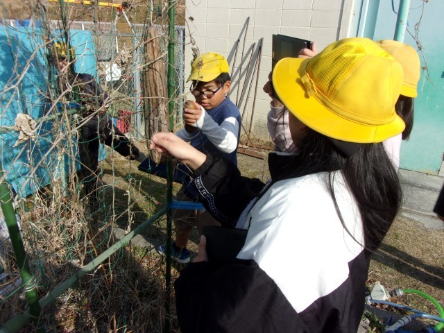 4年生は理科の授業で冬のヘチマや桜の観察をしました。秋の様子とくらべ、大きく変わっている様子に驚きながら一生懸命観察することができました。