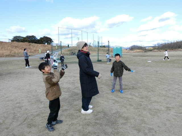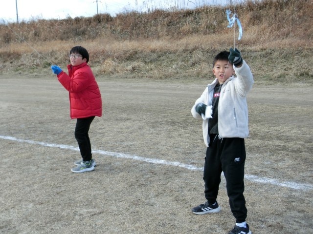 凧あげ大会が行われました。寒い日でしたが子どもたちは元気よく凧をあげていました。また、たくさんの保護者の方々に参加いただき絡んだ凧を直していただきました。ありがとうございました。