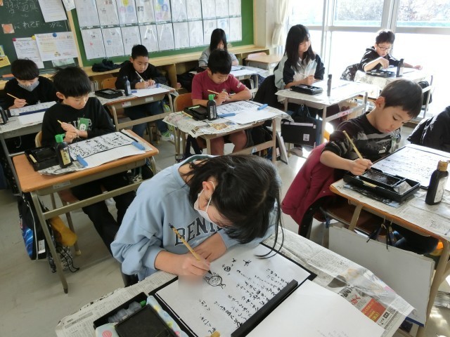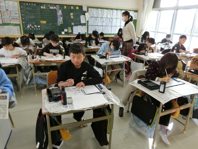 3年 書道科 公開日 2026/01/26 更新日 2026/01/26 学校の様子 3年生、最後の書道科の授業が行われました。今日はたんぽぽはるかさんの「あしたこそ」の詩を書きました。とても集中して書き、それぞれの個性が光る作品ができあがりました。 +5