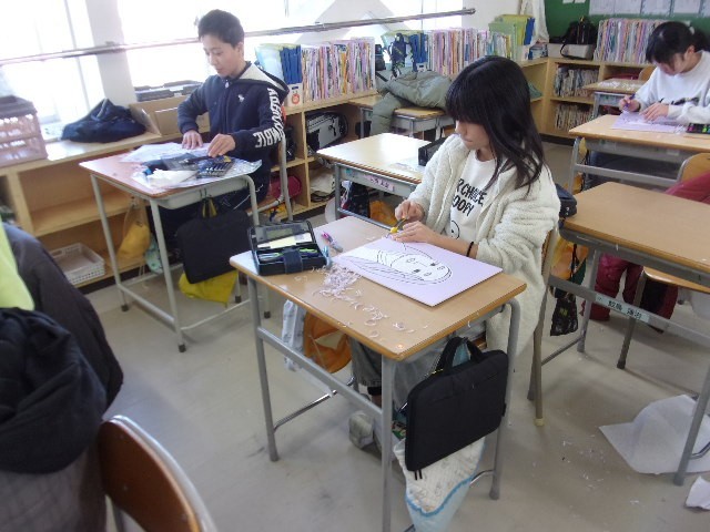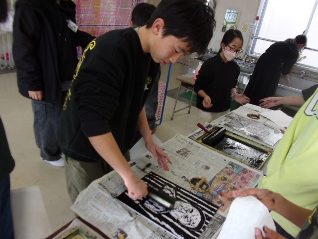 1組 図工の版画 歴史上の人物の版画を作っています。みんな個性が出ていていいですね!