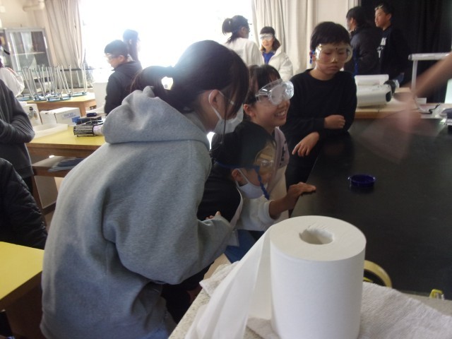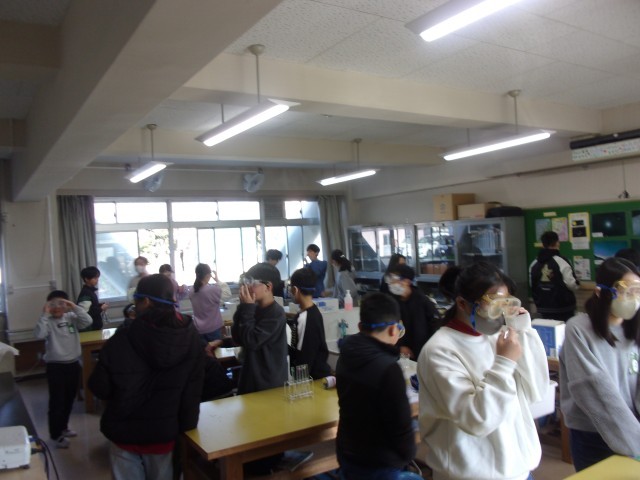 2組 理科の実験 いろいろな気体を発生させる実験をしています。みんな興味津々です!