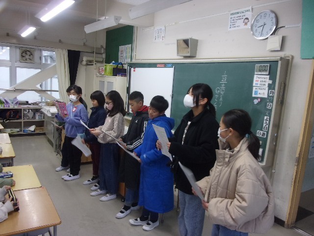 今週は、ふれJ班の贈り物の説明を5年生が行いました。6年生一人ひとりにメッセーセージカードをプレゼントする予定です。体育では、Tボールの試合をしました。打撃方向や守備位置を工夫して、それぞれのチームで作戦を立てて試合を行っていました。