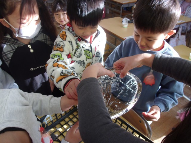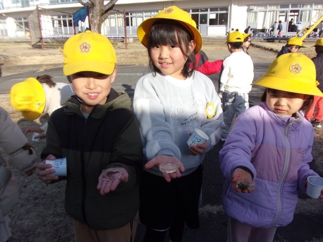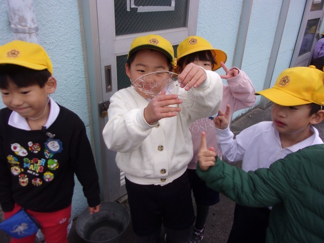 意外にも、こんなに寒くても、簡単に氷ができなないことに、子どもたちもびっくりでした。