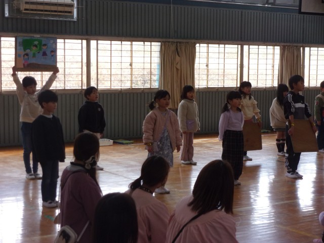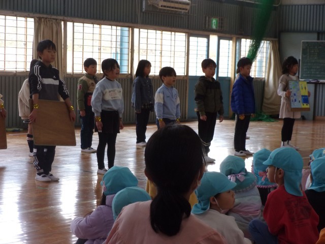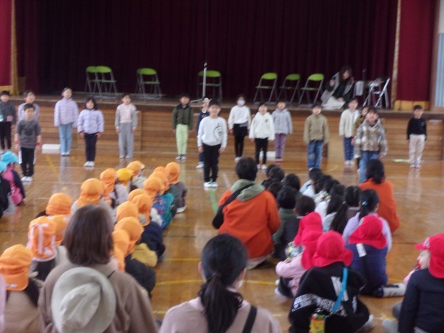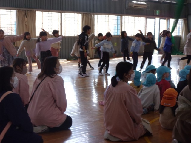 途中、体育フェスティバルで踊った「やってみよう」を元気よく歌いながら踊りも披露しました。