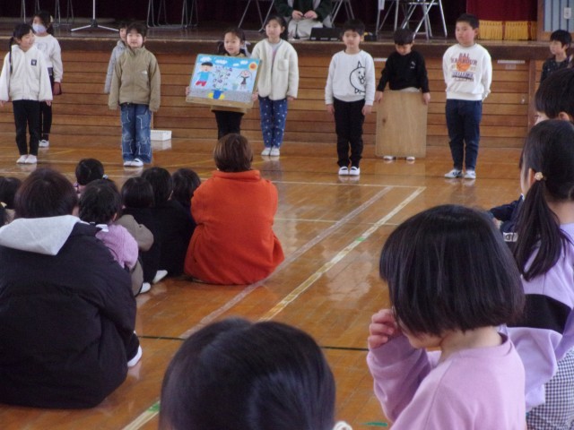 まず、1年生の1年間を行事を中心に、練習通り大きな声で、説明しました。