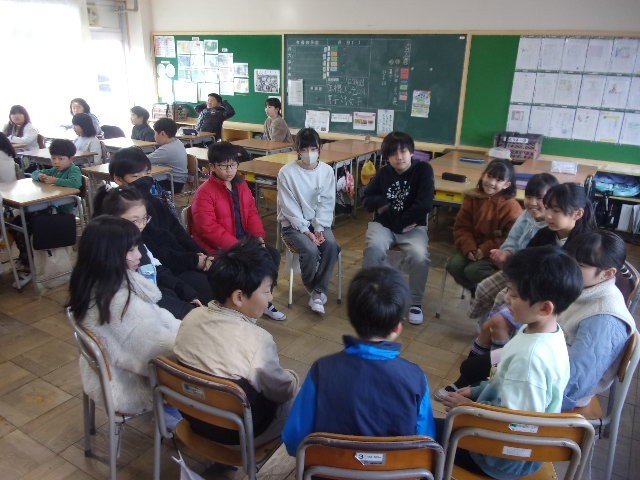6年生がふれJ班で、1年間、1年生から5年生のために、いろいろな楽しい遊びを考えたり、1年生の凧糸を調整してくれたりしてくれました。