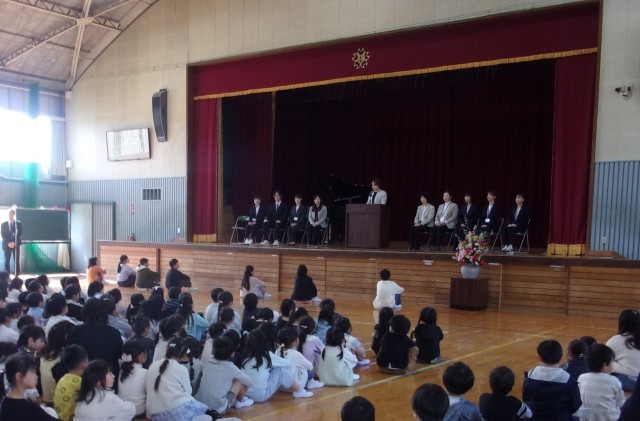 さすが2年生!始業式、対面式では、静かに話を聞いたり、新しく赴任した先生や1年生に拍手を送ったりして、集中して臨んでいました。