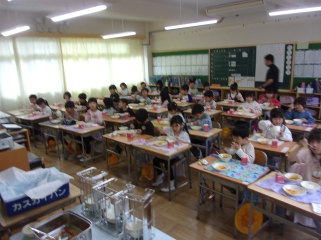 入学して、2週間がたちました。まだまだ慣れないことばかりではありますが、朝の支度や帰りの準備は自分たちでさっとできるようになりました。神領山で遊んだり、図工で絵を描いたり、毎日全力で頑張っています。21日から始まった給食も、上手に準備しています。給食が始まるのをとっても楽しみにしていたので、「おいしい!」と言いながら笑顔で食べていました。