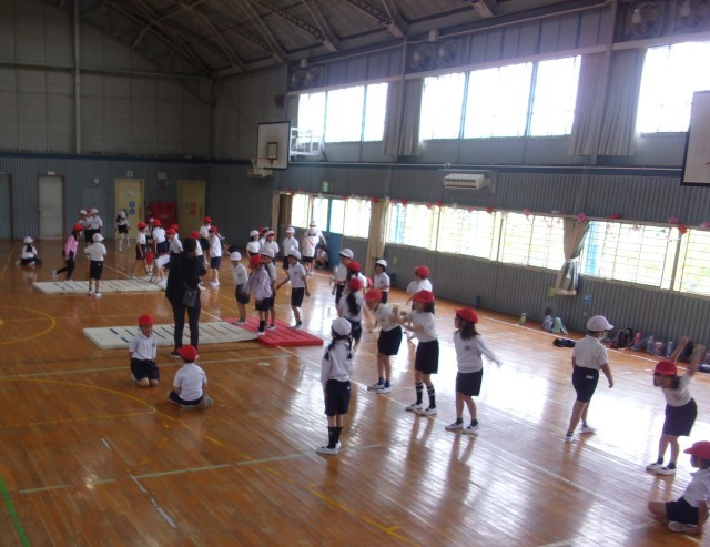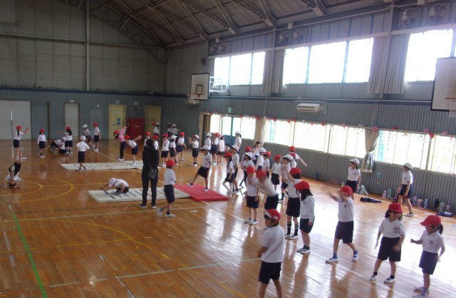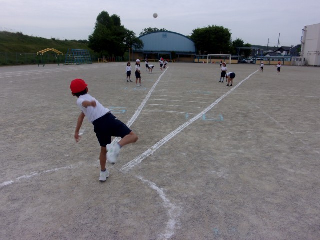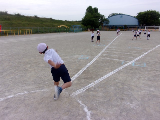 今年度初めて1,2年生も取り組むスポーツテスト。50m走、ソフトボール投げ、立ち幅跳びの練習を頑張っています。