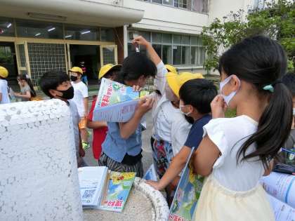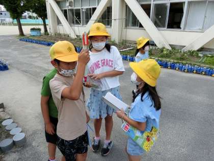 4年生の理科です。天気の変化と気温の変化の学習のため、1時間おきに気温を測り、折れ線グラフに残しています。継続的に記録を取ることで、天気と気温の変化の関係性に迫ります。