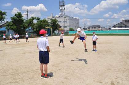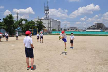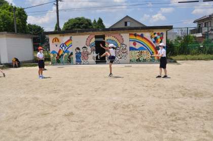 6年生の体育は「走り高跳び」に入りました。少ない歩数で、リズミカルに跳ぶことをめあてにして、はじめは恐怖心をもたないようにゴムで跳んでいました。