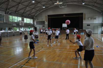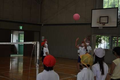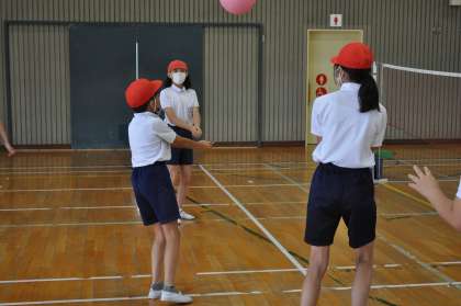 5年生の体育は「ソフトバレーボール」の単元を行っていました。単元の終盤に入っているので、ゲームをしていました。ラリーが続いて、白熱したゲームになっていました。