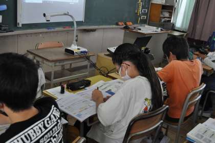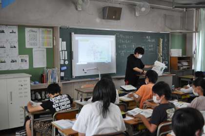 6年生の理科は「動物のからだのはたらき〜吸う空気とはく空気〜」の単元を行っています。実験結果をもとに呼吸についてまとめ、その後、肺の働きと呼吸の仕組みの動画をみて確認しました。