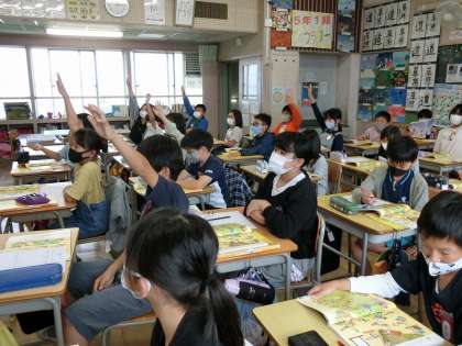 5年生の道徳です。自分たちの身近な生活の絵を見ながら、ルールは何故あるのかについて考えました。