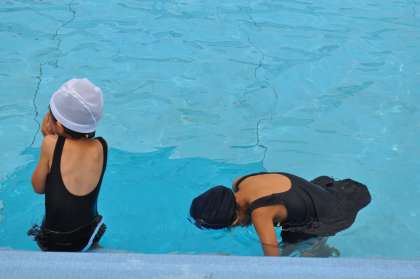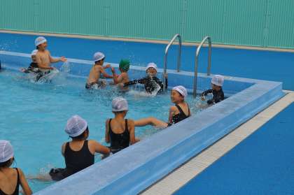 1年生の体育は「水泳」を行っていました。はじめての水泳で、水を自分の体にかけたり、プールの中を歩いたり、何をするにしても楽しかったようです。梅雨に入りましたけど、来週もできるといいですね。