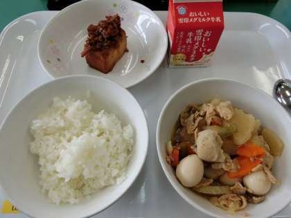 ご飯 牛乳 大根と豚肉の煮物 生揚げの肉味噌かけ