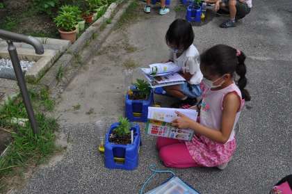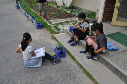 3年生の理科は「どれくらい育ったかな」の単元を行っています。ホウセンカの種をまいて、1か月半ぐらいになりました。順調に成長しています。今日は、その観察をしました。