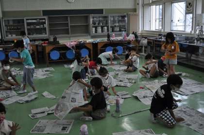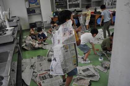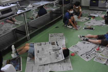 2年生の図工は「しんぶんしと なかよし」の単元を行っていました。新聞紙の形や大きさに触れて感じたことをもとに、イメージをふくらまし、いろいろな形を作っていきました。