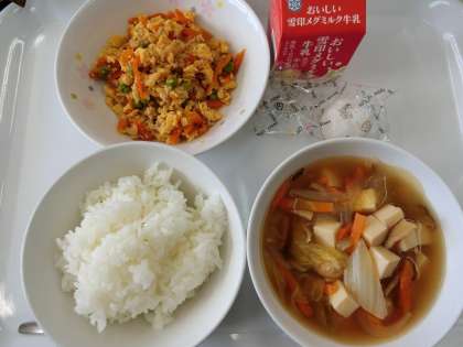 ご飯 牛乳 鮭団子 親子そぼろ 芋大福