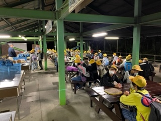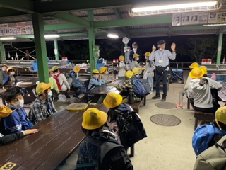 今から火起こし体験です。しっかり説明を聞いて、成功させましょう。