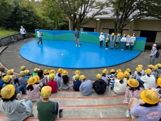 退所式です。お世話になった自然の家と、職員の皆さんに心を込めて挨拶をします。2日間、本当にありがとうございました。