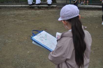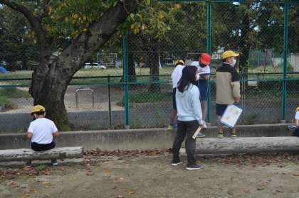 4年生の理科は「すずしくなると〈あたたかさと生き物〉」の単元を行っています。今日は、サクラの成長の様子を観察し、記録していました。