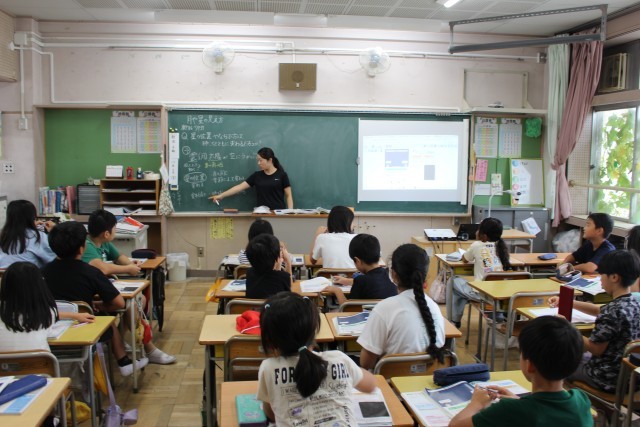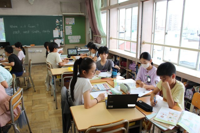 教育実習が今日で最後だったので、お別れ会をしているクラスがありました。外国語活動では、英会話を聞いて、わかったことをメモしていました。