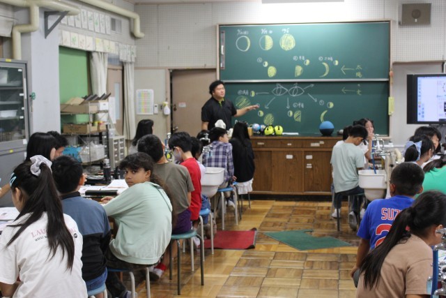 外国語のではアルファベットの読み方を勉強していました。理科の授業では、太陽がどの位置によって月の見え方が違うことを確認していました。