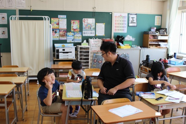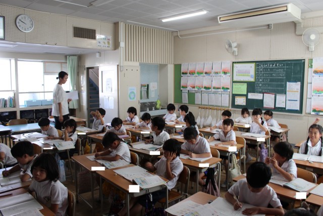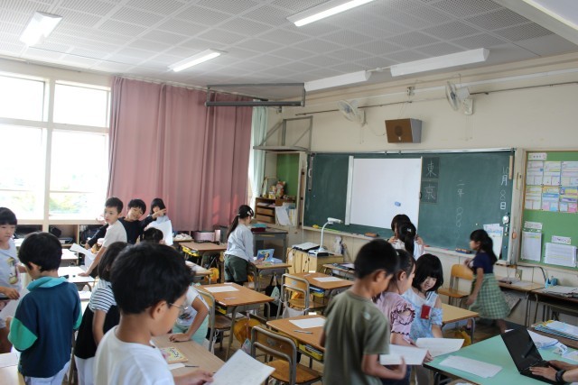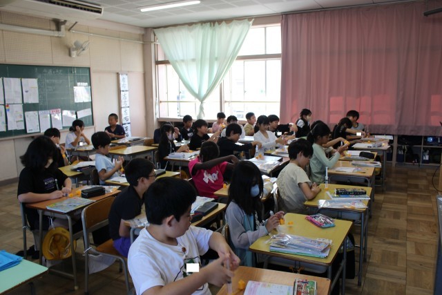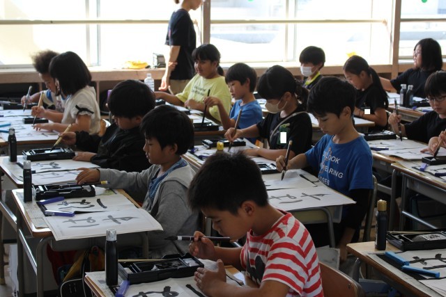 書写の時間では「はす」の書き方やポイントを書講師から学んでいました。1年生はどんどん漢字を学んでいます。