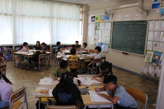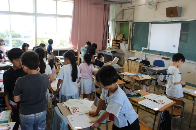 国語の授業では、登場人物の気持ちを考えて、グループ内で発表していました。道徳の授業では、友達の意見と自分の意見を比べていました。