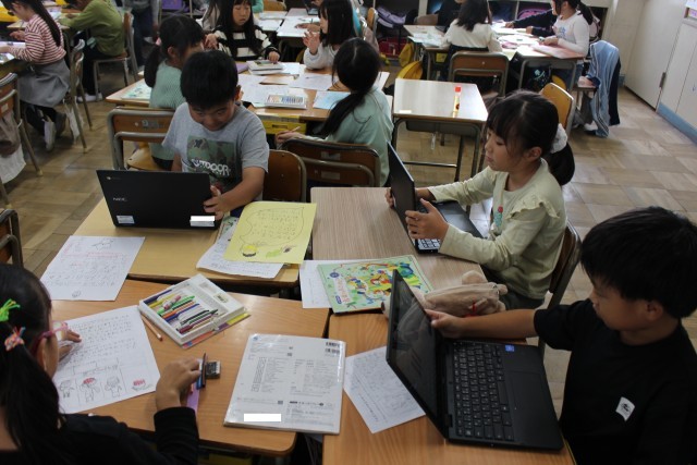 生活科では、タブレット端末を活用して町探検のまとめをしていました。算数では、単元の風呂帰りを行っていました。