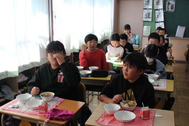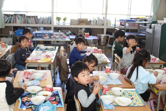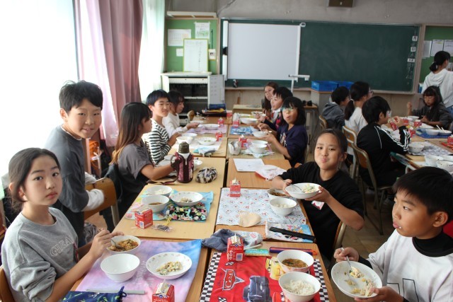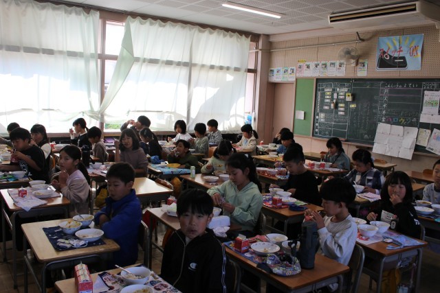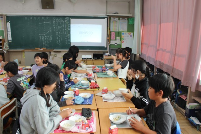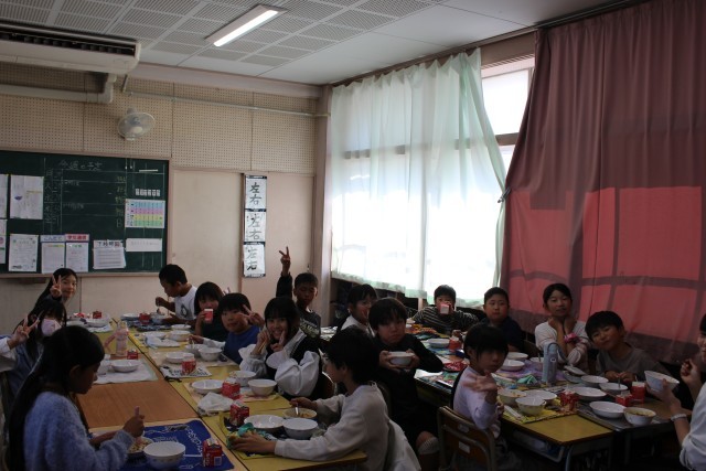 10月30日(木)給食の様子(今日のキーマカレーは本校児童が考えました)。